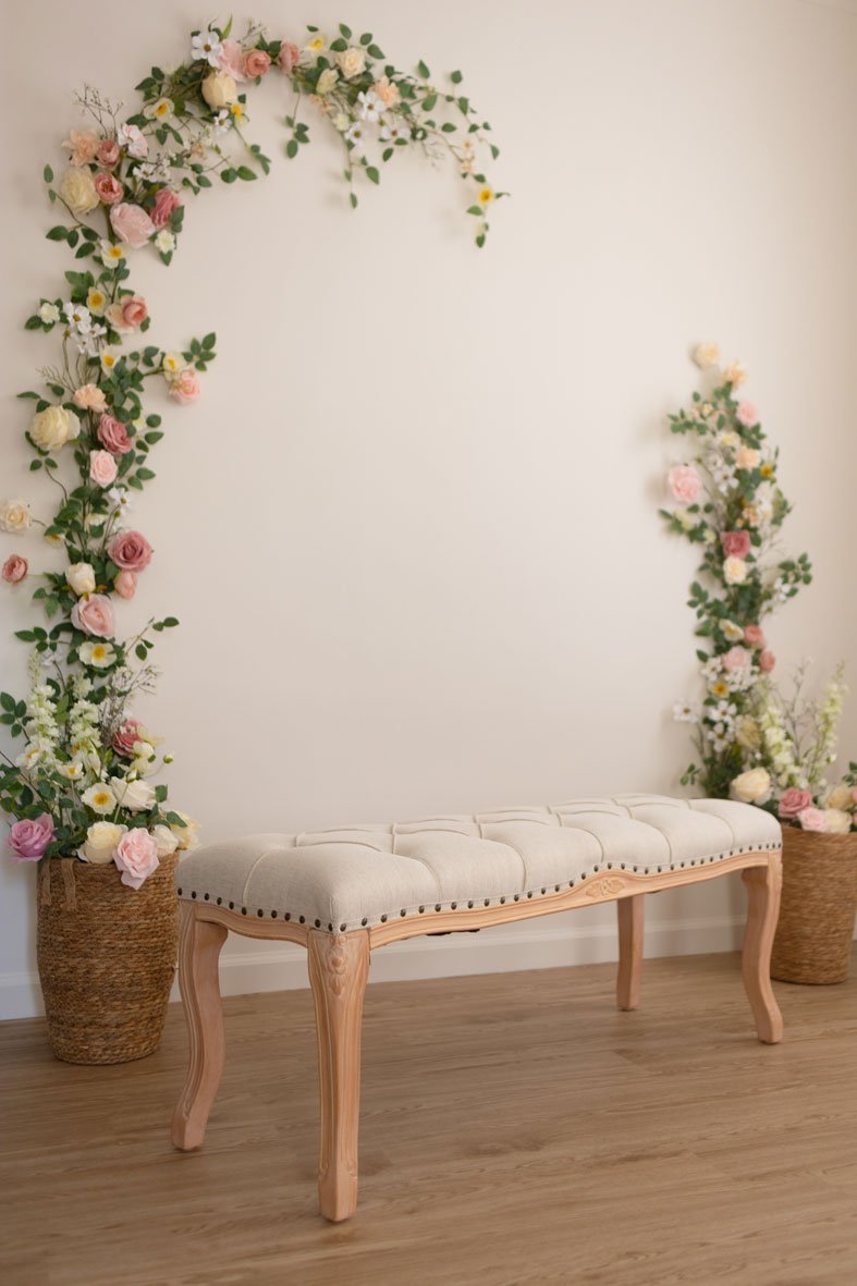 A soft, floral spring scene designed to feel romantic. Located in Alhambra, CA in our home-studio.